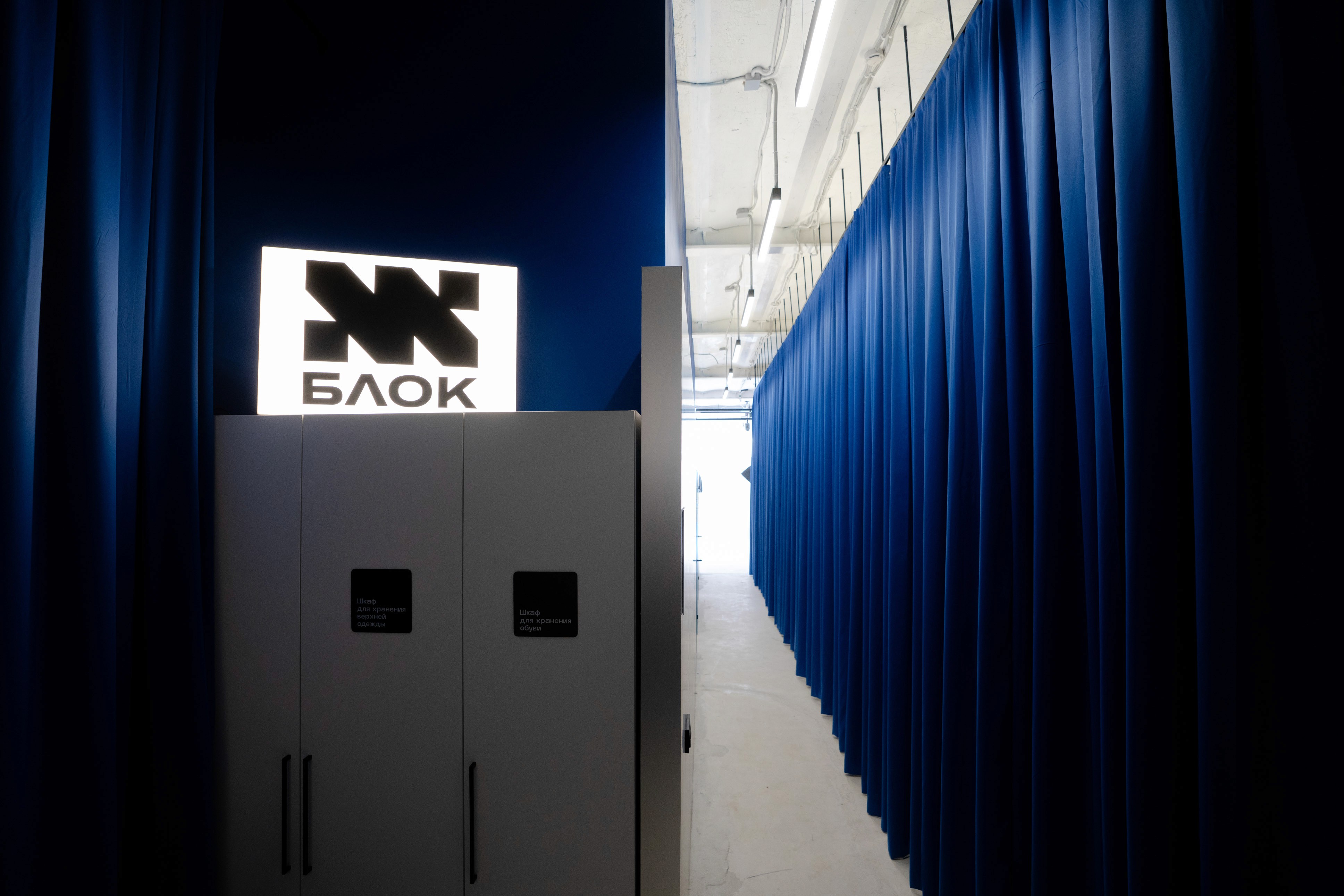 В Блоке интерьер построен на сочетании текстур, света и деталей: металл, мягкая мебель, приглушённое освещение.