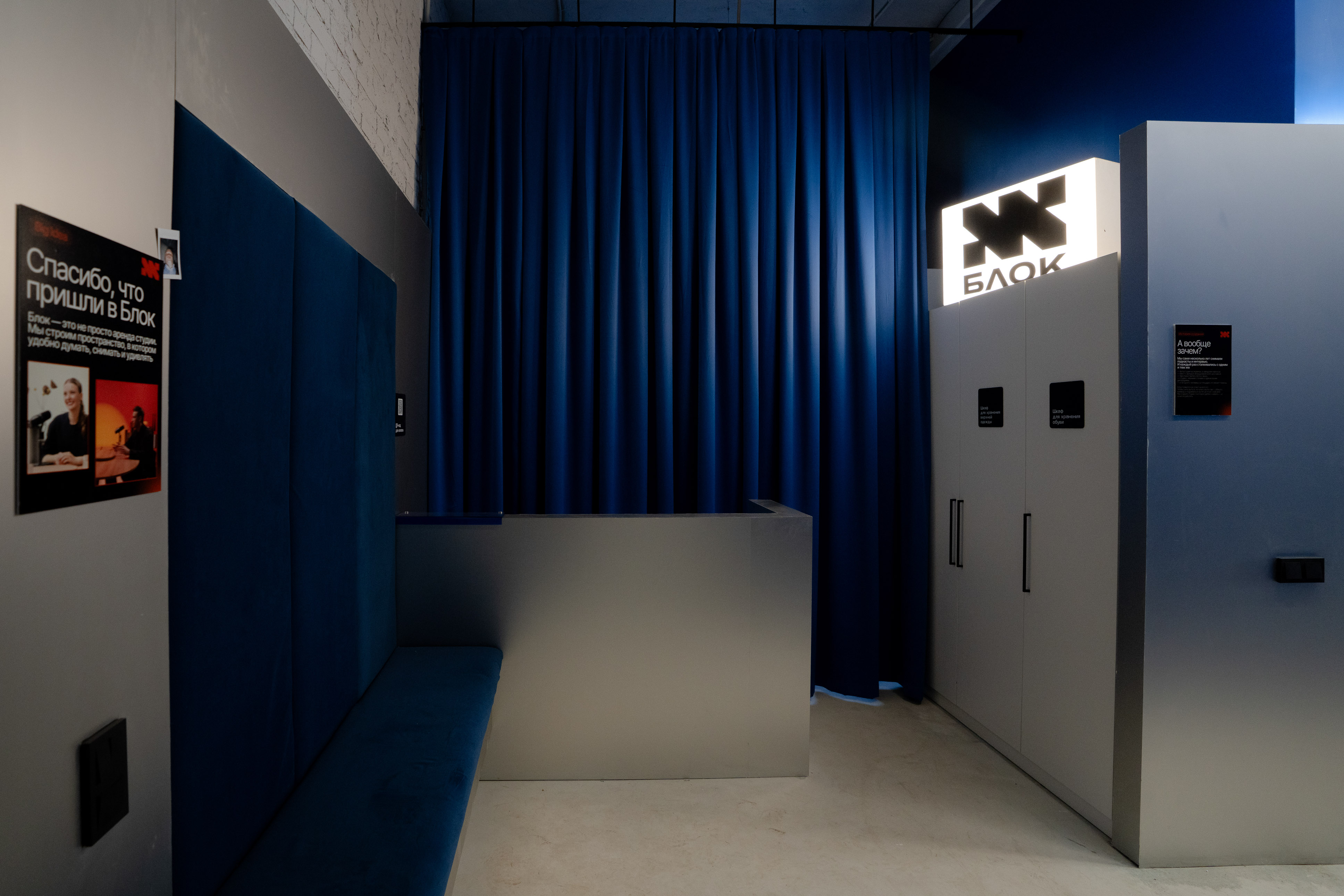 Блок студия с модульным пространством: свет, мебель и атмосфера легко подстраиваются под любую задачу.